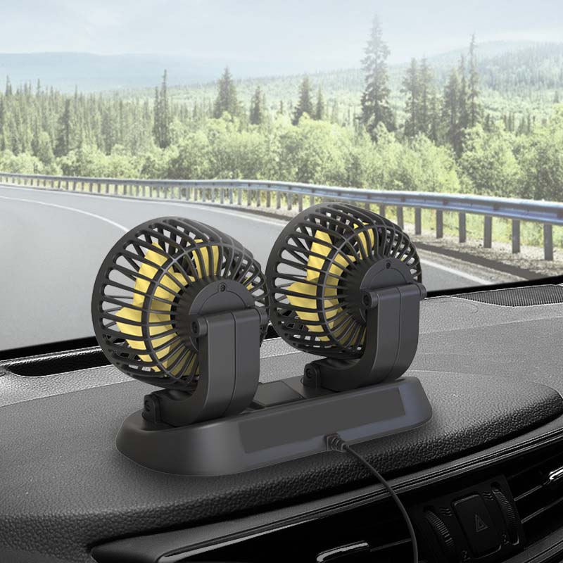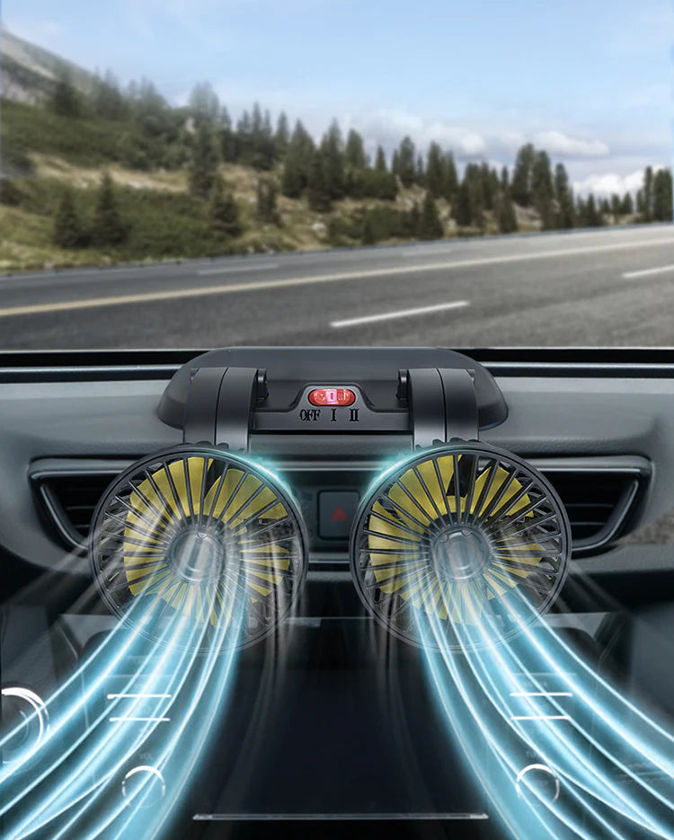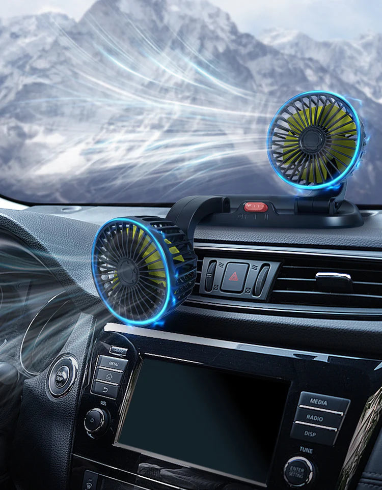 Experimenta un confort excepcional con el Ventilador de doble cabezal para coche, tu solución para un ambiente fresco.
